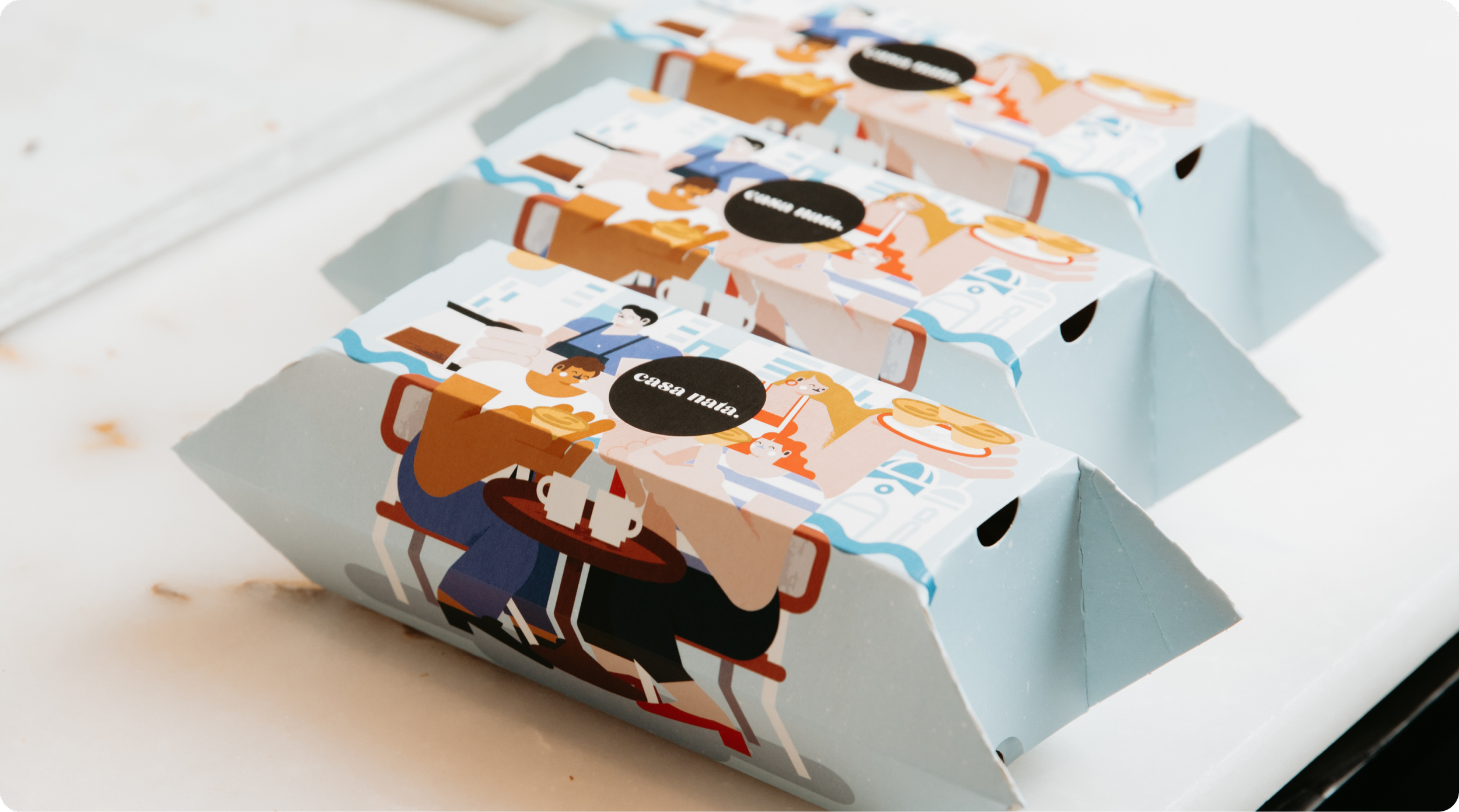 We built the visual identity through typography, pattern, and packaging design rooted in Portuguese tradition. Then we collaborated with Lisbon-based artist @tiago.galo to create a suite of original illustrations for the bespoke tart boxes. Packaging that earns its place on the kitchen bench long after the tarts are gone.